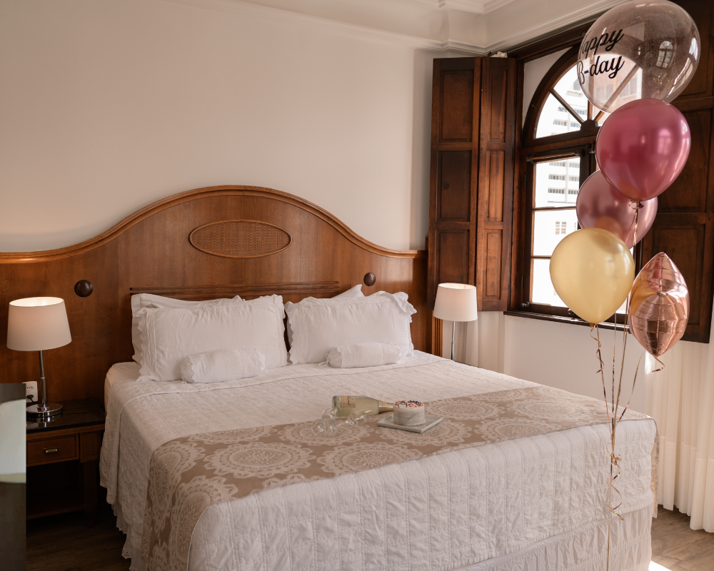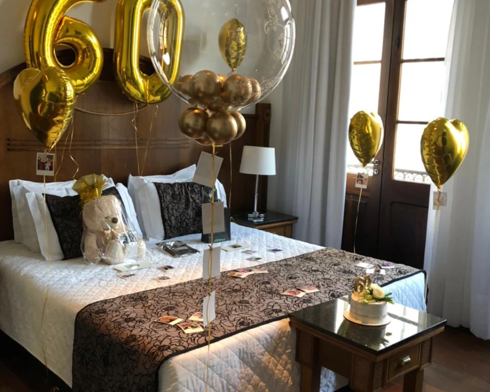 Celebre seu aniversário ou presenteie quem você ama de uma maneira super especial! Quartos decorados , com direito a bolo, balões e espumante para brindar e festejar em grande estilo.